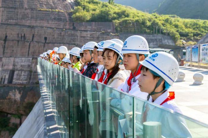 在左岸地下廠房,志愿者圖文并茂地向大家介紹了有著水電行業“無人區”之稱的單機容量100萬千瓦的水輪機組,同學們第一次在課本之外學到了如何將水能轉換成電能的科學知識。表孔過流氣勢磅礴,百萬機組前無古人,大國重器的“大”與“重”深深烙印在求知若渴的少年心中。