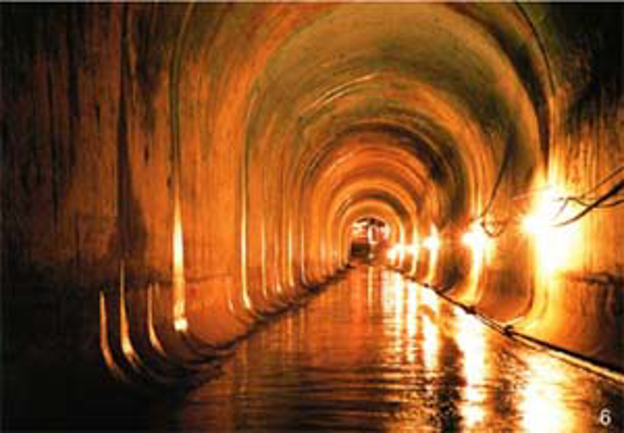 假如船舶要從下游駛向上游——船舶駛入第五閘室后,關閉下游人字門,通過地下輸水系統,第四閘室往第五閘室內充水,當兩個閘室內水面齊平時,打開上游人字門,船舶駛入第四閘室。依此類推,船舶就好像爬過一級又一級樓梯一樣,通過第一閘室,駛向大壩上游航道。船舶下行的過程相反。三峽船閘單個閘室凈寬34米、長280米,是世界上最大的閘室,可同時容納6艘3000噸級船舶。一艘船通過三峽船閘大約要3個小時。