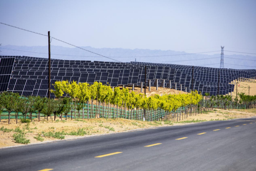 ▲圖為2024年6月拍攝的庫布其新能源大基地光伏一期100萬千瓦“光伏+荒漠化”治理工程現(xiàn)場。本文攝影:張博文